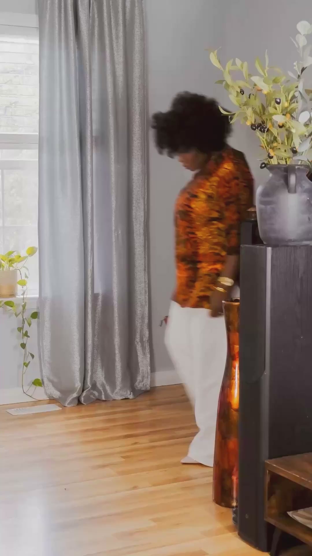 Pair with high-waisted washed denim or a flowing maxi skirt for a relaxed boho look. Worn out preferably.