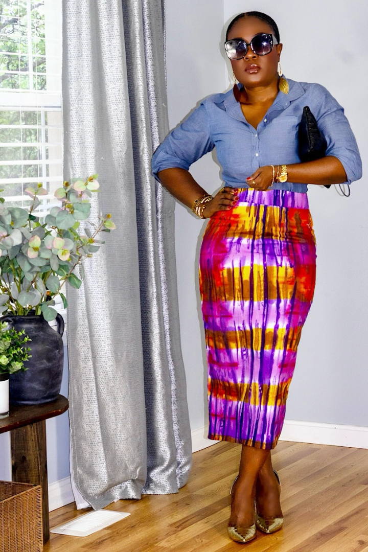 Elevate your wardrobe with our Midi Batik Pencil Skirt, a timeless piece that blends tradition with modern femininity. Crafted from 100% authentic West African batik cotton, this skirt hugs your curves in all the right places while offering breathable comfort for all-day wear.